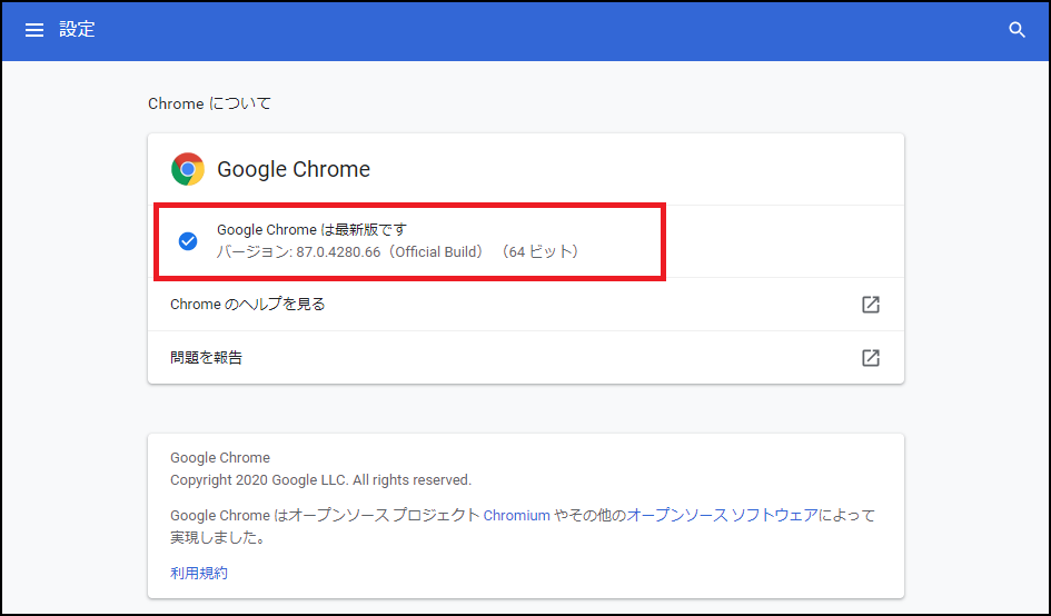 設定をデフォルトの状態から変更していなければ、Google Chromeは最新の状態に常に自動でアップデートされます。