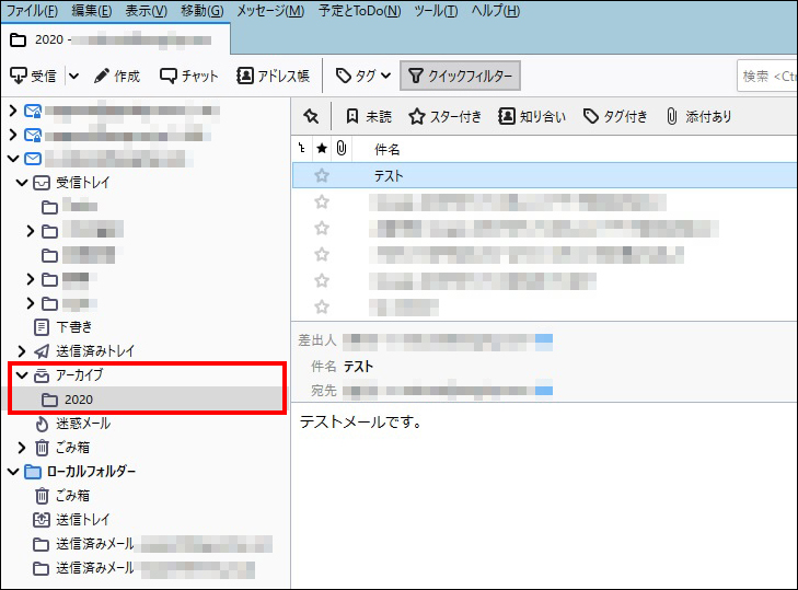 アーカイブされたメールを見るためには、フォルダ一覧の中にある「アーカイブ」を確認します。