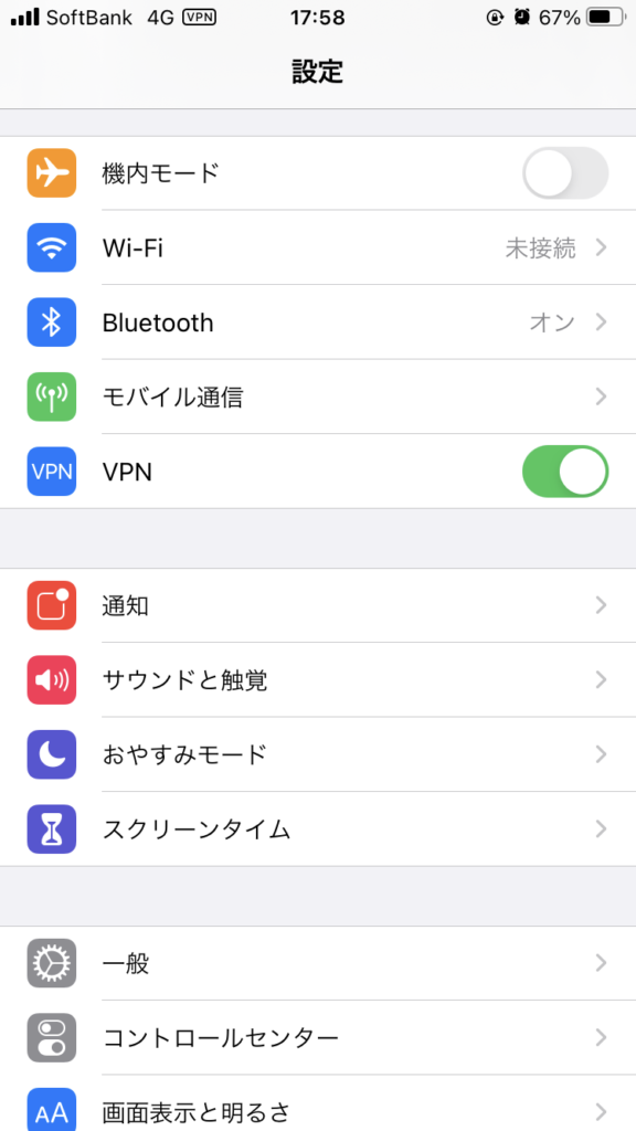 ⑦設定を一度行えば、次回からは設定の「VPN」をオンにするだけでVPN接続ができます!設定を切るときはオフにすればOKです。