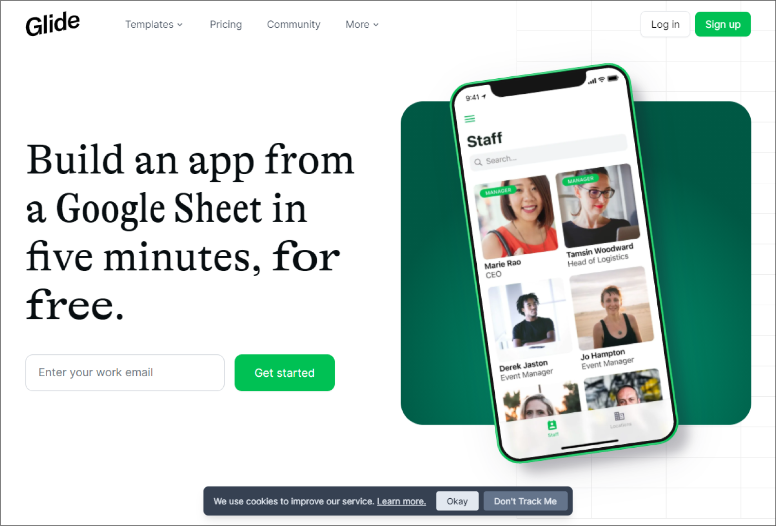 Glideは、Googleスプレッドシートをデーターベースとして用いることで、簡単にアプリ開発を行えるノーコードサービスです。