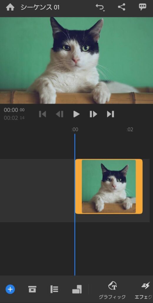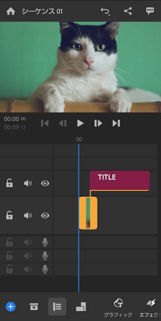 また、パーツの表示・非表示、音声のオン・オフ、間違えて編集してしまわないようにロックをかける機能(画像右側、南京錠のアイコン)は、有料版のPremiere Proと同じ外観&使い勝手になっています。