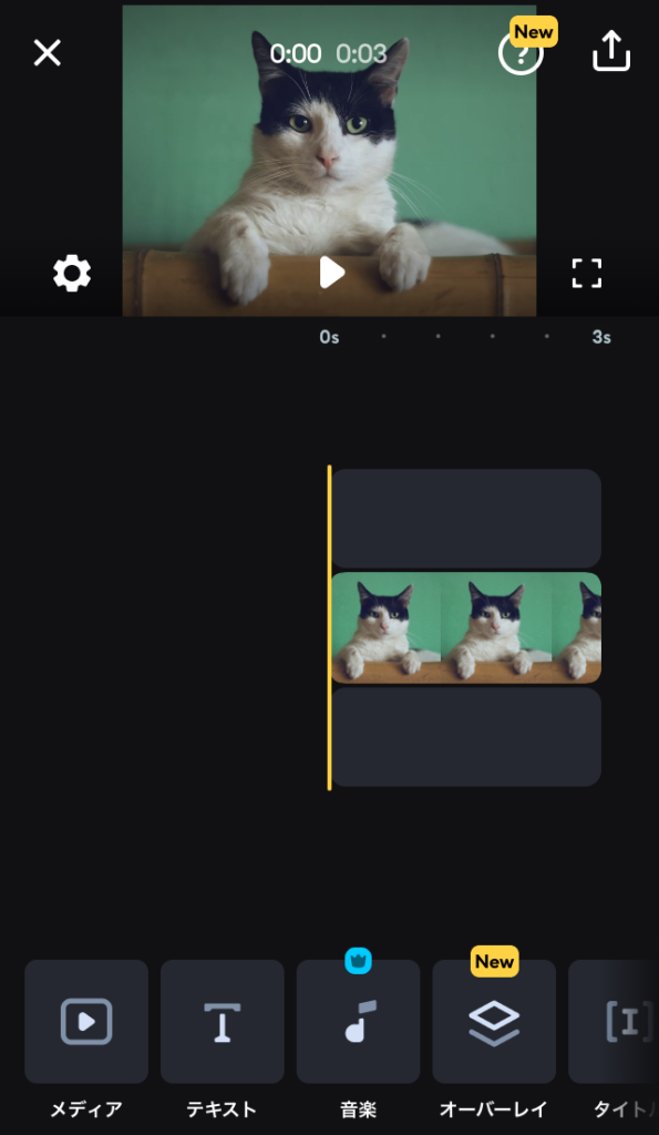 ちなみに、王冠のマークがついている機能(写真右側)は編集画面では使用できますが、動画を書き出し(保存)する際にプレミアム会員へのアップグレードが必須になるので、編集中は誤って選ばないように注意した方がよさそうです。