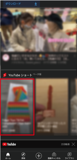 Shortsとは、Youtubeのトップ画面で表示される縦長の動画のことで、主にスマホで撮った短い動画を投稿するための機能です。