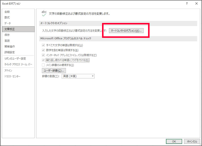 ②「オートコレクトのオプション」をクリック