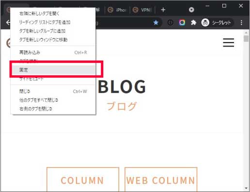 Google Chrome(グーグルクローム)の便利な機能|大切なタブは固定できる!