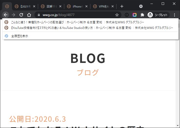 かなり前のページに戻りたいときにも、戻るボタンを連打しなくていいので便利ですね。「進むボタン(→のアイコン)」も長押しすることで、同様に履歴の表示ができます。