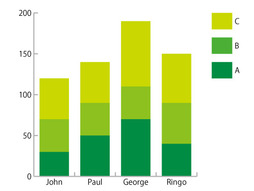 積み上げグラフと違いトータルからの各項目の割合と変化が分かりやすくなります。