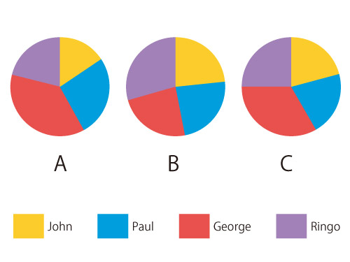 それぞれの内容を占める比率がわかるのでよく色分けなどで表現されます。