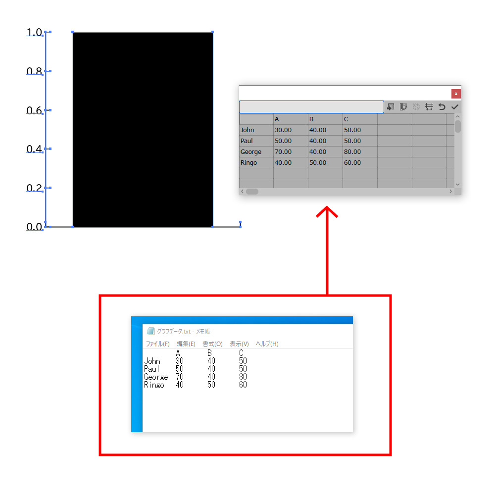 3.グラフができました。次に数値を入力しますが今回はテキストで事前にサンプルを準備しました。
