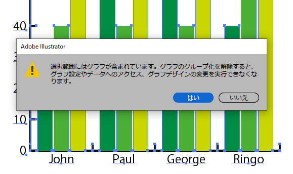 さらにグラフ作成後にデータをグループ解除すると従来のオブジェクト同様に細かな編集が可能になります。