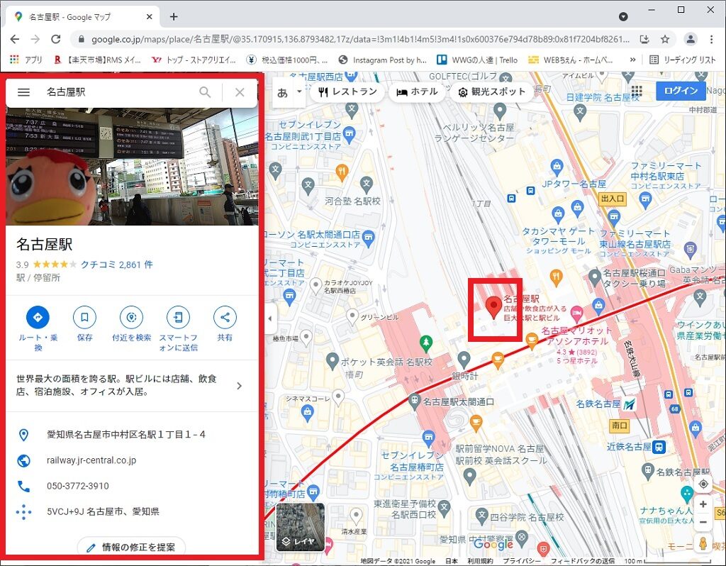 ②以下の赤枠に情報が出ているか確認。赤いピンも同様に確認してください。
