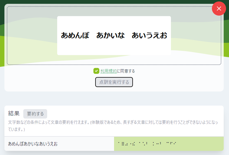 これで数秒後には点訳結果が表示されるので、とても簡単に利用できます。