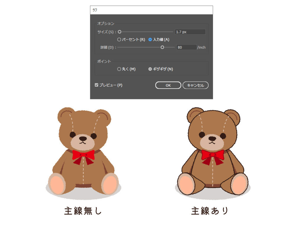 今回は「サイズ⇒1.7px」「詳細⇒80/inch」「ポイント⇒ギザギザ」で設定しました。