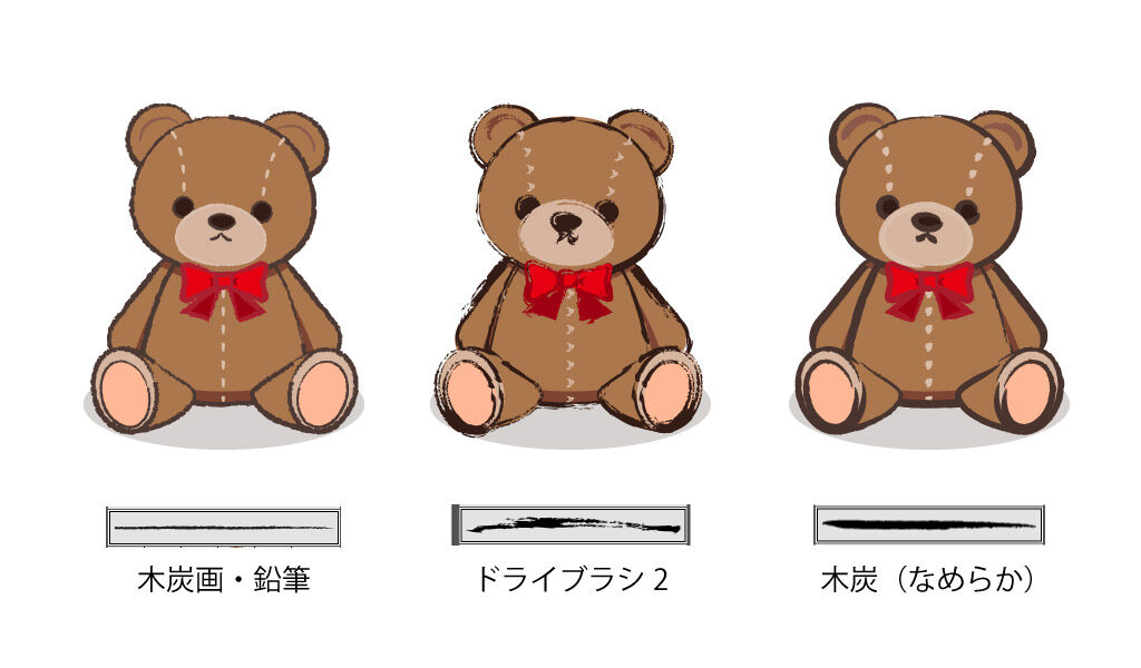 ブラシによって、だいぶ雰囲気が変わりますね!
