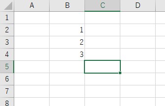 まずは、合計を出したいセル(今回はC列の5にしました)にカーソルを合わせます。