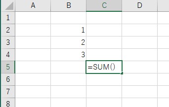 そうすると自動で「=SUM()」という文字が入力されるので、あとは計算したい範囲を指定するだけです。