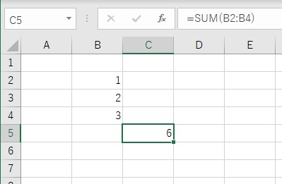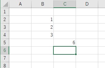 オートSUMを設定したC列の5に1+2+3=6がきちんと表示されているので成功です!