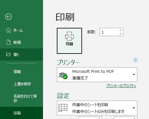 印刷したいシートを選んだら、【Ctrl】+【P】を押してください。そうすると一発でこの画面になります