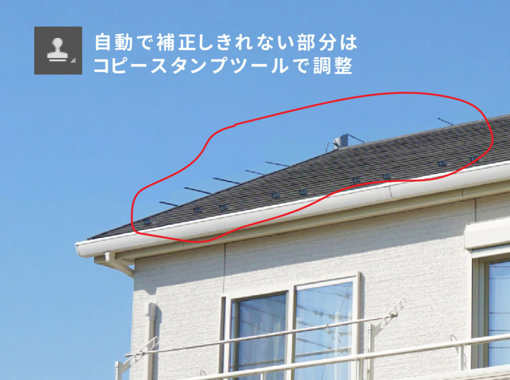自動で補正しきれなかった部分は、「コピースタンプツール」で調整します。