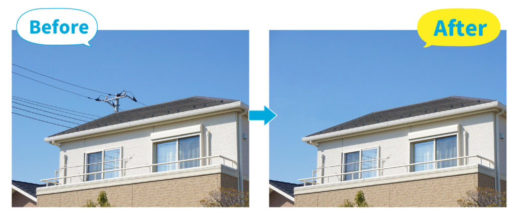 次は、こちらの家の写真の電線を消してみましょう。