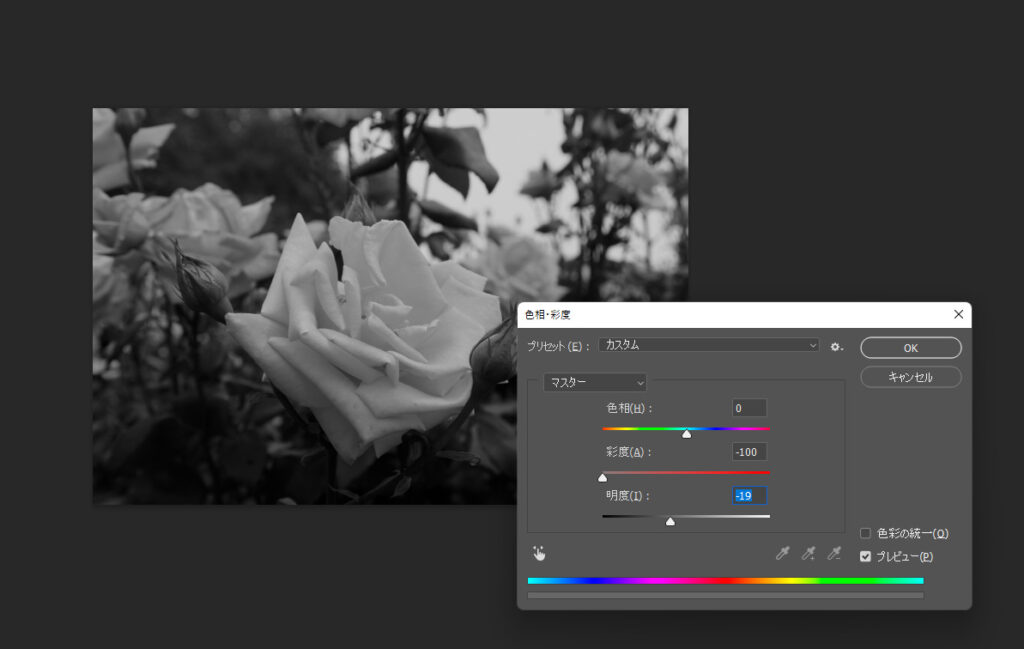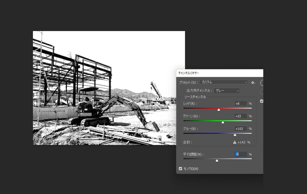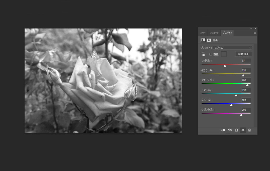 カラー写真が持っている色合いを基にするので、実際の陰影とは違った変換にならないよう気をつけましょう。