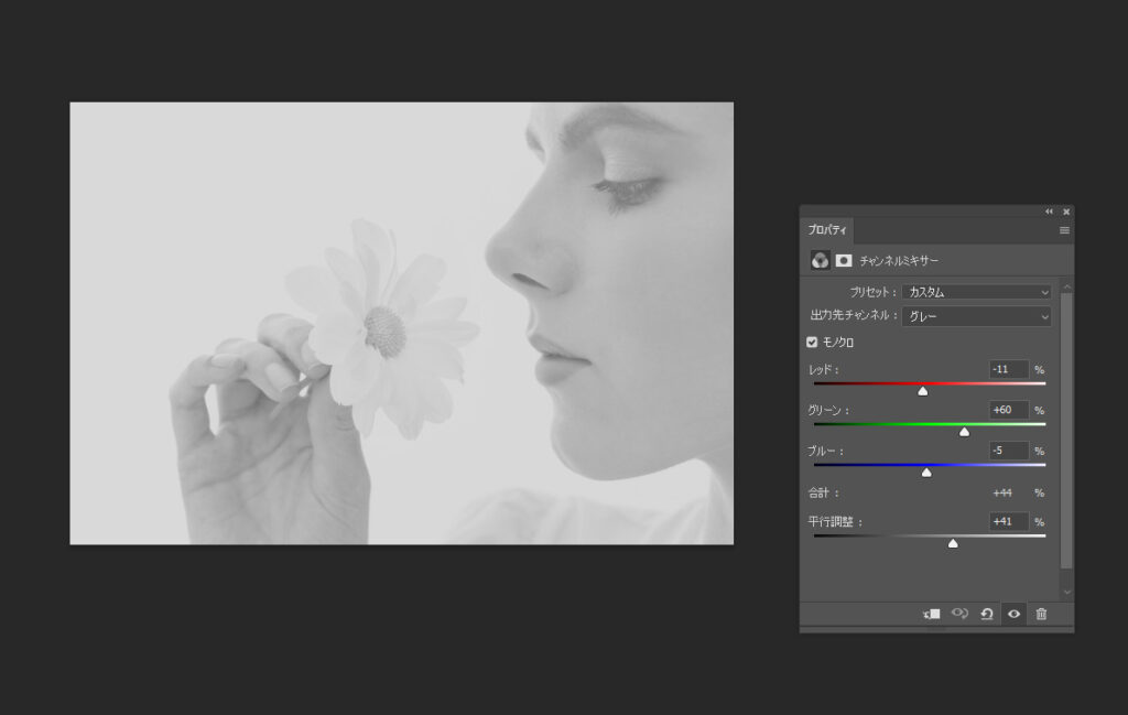 [イメージ[レイヤー]→[新規調整レイヤー]→[チャンネルミキサー]