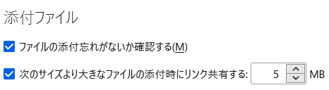 Filelinkを使用したくない場合はチェックマークを外し、使用する容量の上限を変えたい場合は「5MB」の数字部分を変更します。