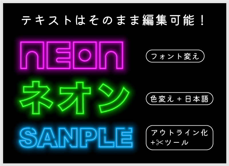 私は初めてこの機能を試したとき、「こんなに簡単にネオン文字が作れていいのか!」と驚きました。