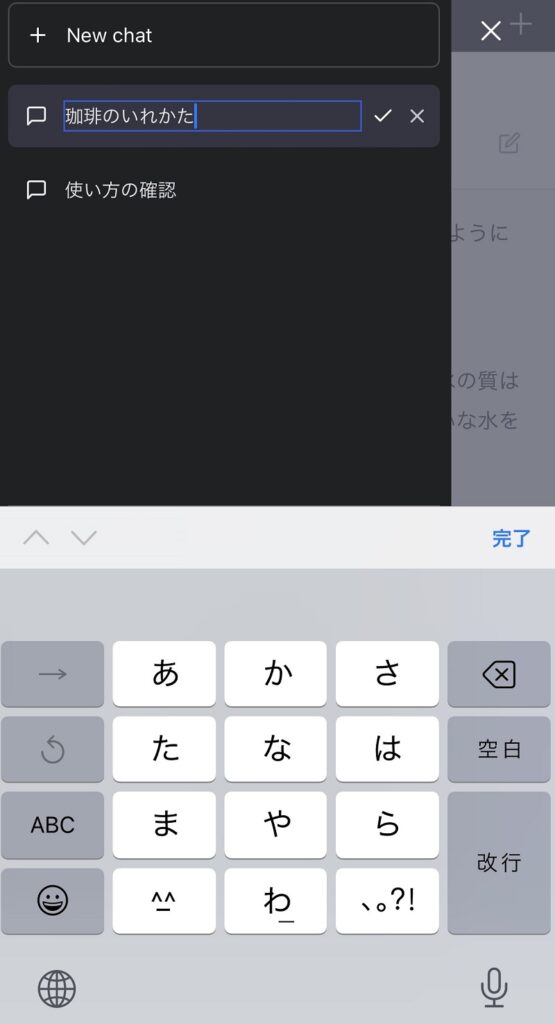 また、画面上部の+ボタンを押すことによって、その質問したページを保存し、新たにチャットを始めることができます。
