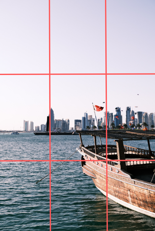 三分割構図は、画面を縦横に三分割するように線を引きます。