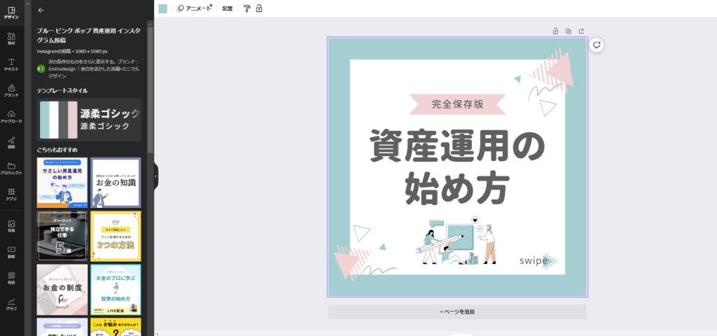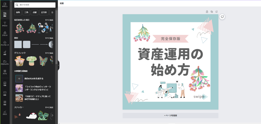 テンプレートを選んだ後、必要な素材を挿入してさらにデザインをブラッシュアップすることができます。