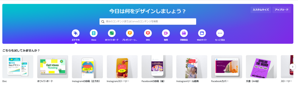 他にも、ブログや動画のサムネイル画像、さらにはビジネスの場面でも役立つ名刺やDocs(文書)など、たくさんの用途に応じてテンプレートが用意されています。