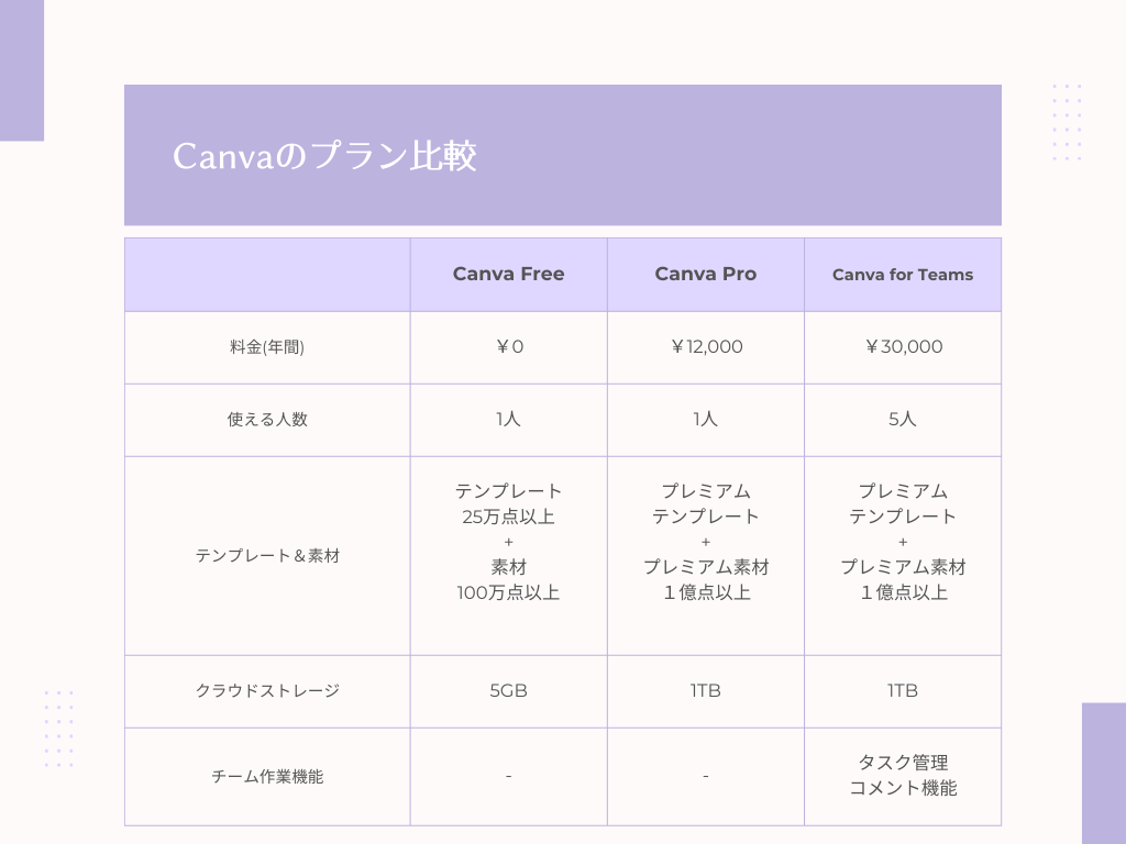「Canva」プラン比較