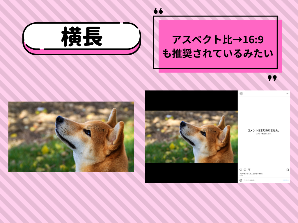 投稿するときに、アスペクト比を16:9にトリミングするボタンもあるので、16:9の画像も推奨されているようですね。