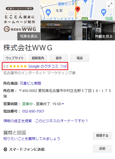 例えば、Googleで自社WWGを検索してみると、クチコミを見ることができます。(素敵なクチコミを書いてくださった皆さまありがとうございます!)