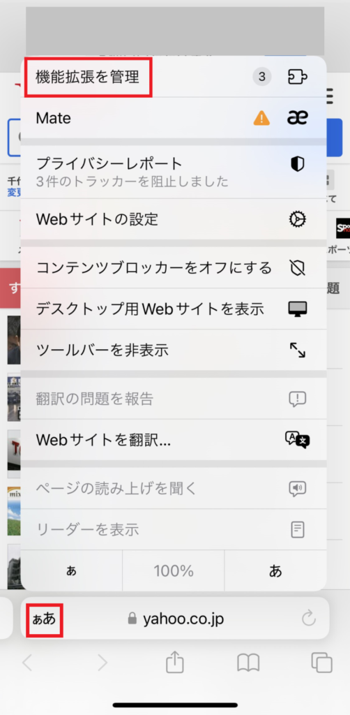 そして、実はこの「機能拡張」はiPhone版safariでも使用することができます。