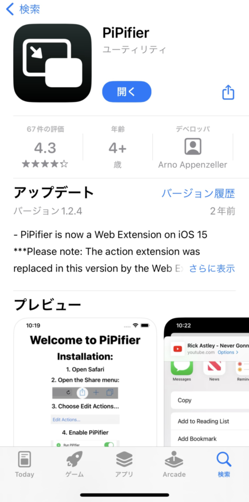 個人的には、「YouTubeを観ながら他のアプリを使える」と考えたこともなかったので、「PiPifier」がとっても便利そうだと思いました。