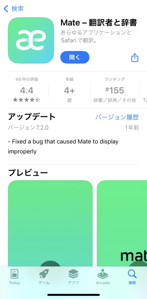 (https://apps.apple.com/jp/app/mate-翻訳者と辞書/id1073473333)