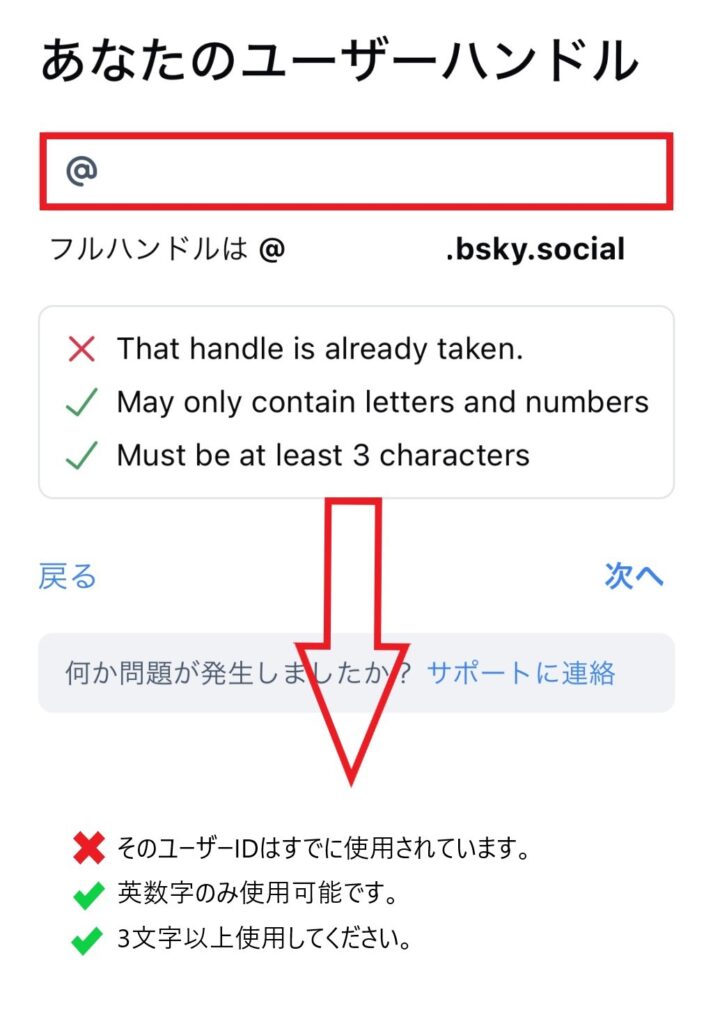 まだ日本語に対応していないようですが、簡単に翻訳するとユーザーハンドルは以下の条件を満たす必要があります。