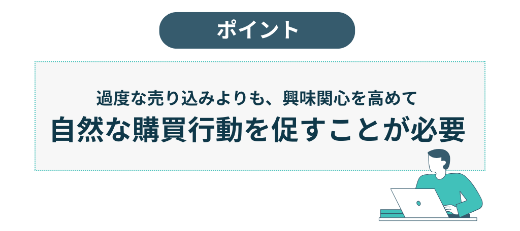 一方、コンテンツマーケティングの場合はあくまでもユーザーにとって有益な情報を発信していくため積極的な売り込みにはならず、嫌われにくいマーケティングができます。