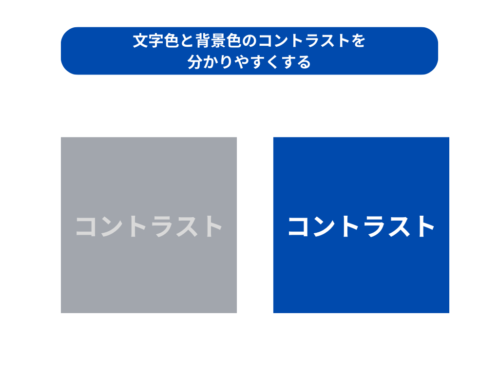 例えば、文字と背景の色が両方明るいと見にくいですよね。ですが、明るい部分と暗い部分があるとコントラストがはっきりして文字が読みやすくなります。