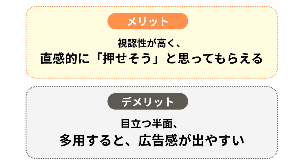 目立つ半面、どこか広告感が出やすいです。また、連続で使うとページがうるさく見えてしまう可能性もあります。