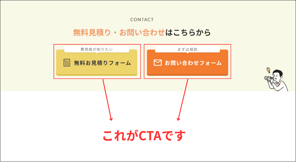 • CTAとはCall To Action(コール・トゥ・アクション)の略で、行動喚起を呼びかけるもの
