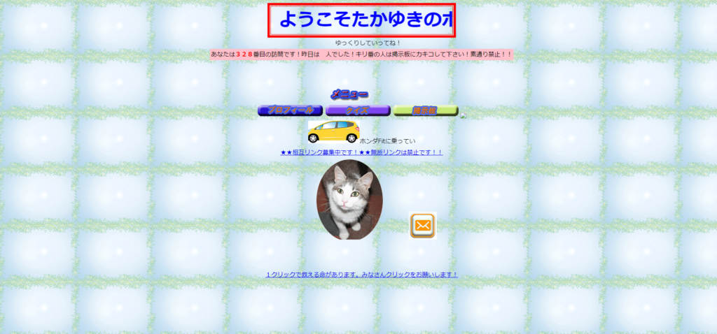 (※タイトルの「ようこそたかゆきのホームページへ」という箇所は右から左へ常にスクロールしています)