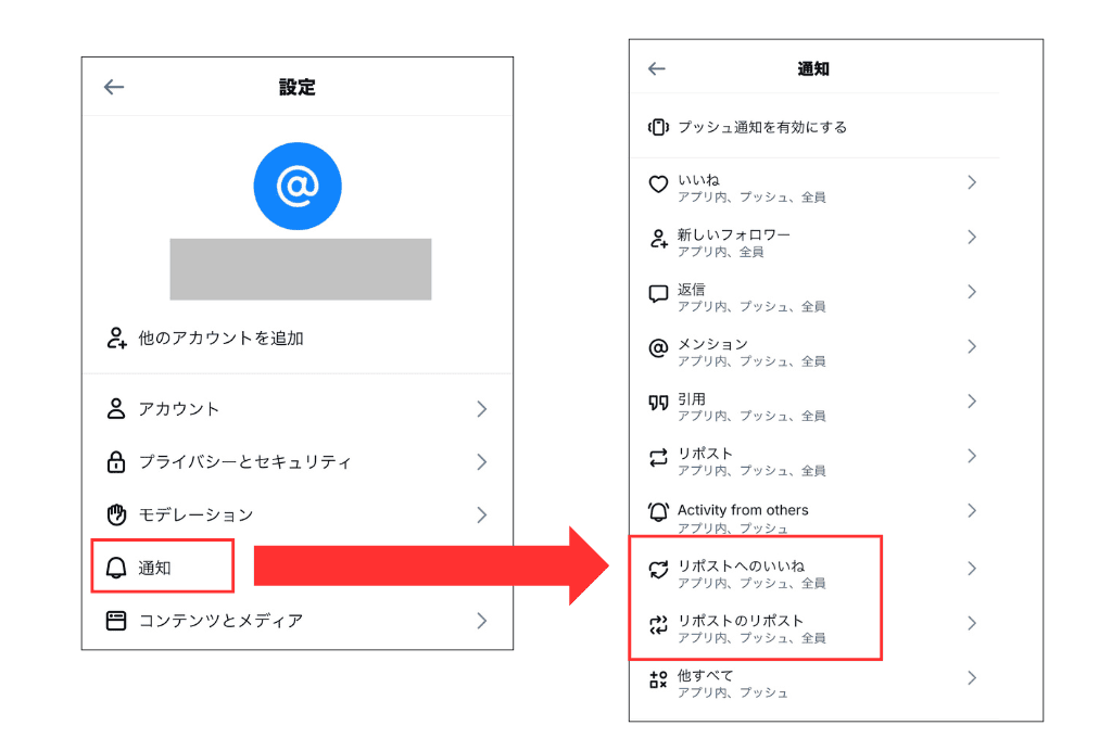 <リポストやリポストのリポストにも通知を設定できようになった>