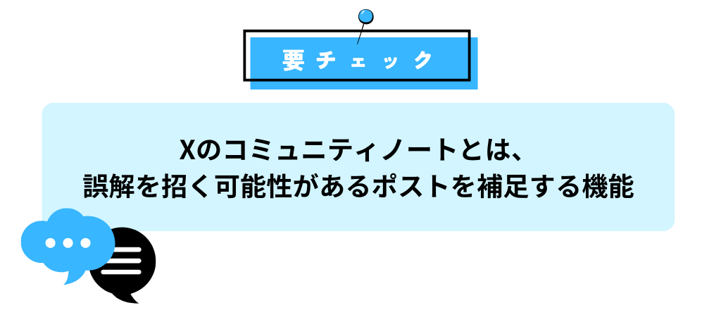 Xのコミュニティノートとは、誤解を招く可能性があるポストに対し、コミュニティノートに参加しているユーザーが、補足情報を追加できる機能のことです。
