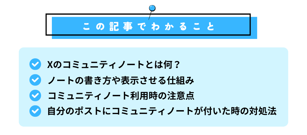 「私のポストに、コミュニティノートが付いてしまった」という場合の対処法や、心構えについてもチェックしておきたいポイントです。