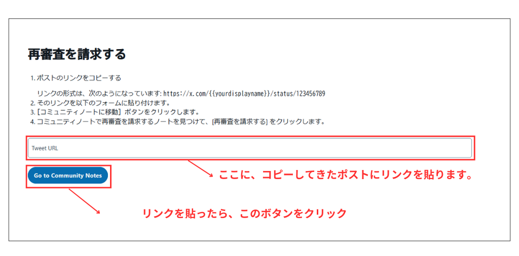 【1】コミュニティノートを再審査してほしいポストのリンクをコピーします。