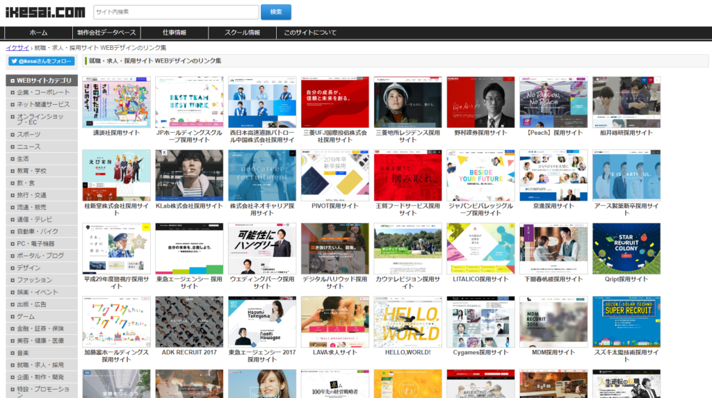 ikesai.comは「イケてるサイト」を集めたホームページで、採用サイトというカテゴリーがあり、採用サイトのデザインを考える際には非常に役立ちます。