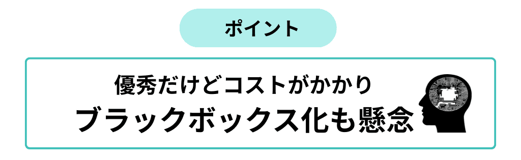 ディープラーニングは、自分自身で特徴量を見出し、学ぶ姿勢が強い特性がある一方で、「なぜこの答えが導き出されたのか」というプロセスや根拠がブラックボックス化してしまいます。